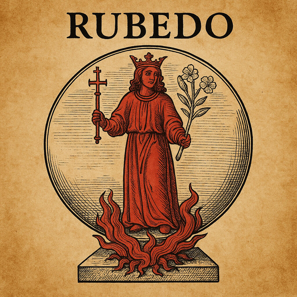 “The stone is complete. The fire burns true. You return, but you are changed.”Rubedo (reddening) is the final phase—the synthesis of soul and spirit, matter and myth. It is the moment when the Self is no longer theoretical, but embodied.It is the blood-phase: the fusion of knowledge and action, vision and form.It is not a finish line—it is your return to the world, but as something sovereign and whole.Embodiment of purpose and personal codeDevelopment of the Magnum Opus—your true life’s workDesigning symbolic commitments and mythic vowsThe beginning of legacy, depth, and true masculine presenceThe fire no longer burns you. You become the flame.